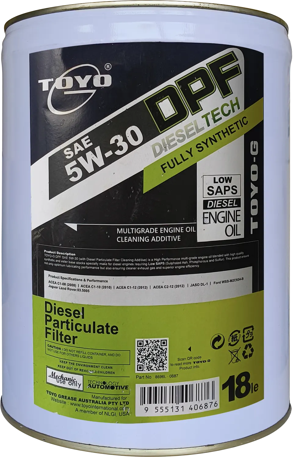 TOYO-G DPF 5W-30 (производится со специальной присадкой для очистки сажевых фильтров дизельного топлива) - универсальное моторное масло с очень высокой производительностью, рассчитанное на использование при работе двигателя на предельно высоких оборотах, состоящее из комбинации высококачественных синтетических и эфирных базовых масел, что помогает обеспечить меньший расход топлива и увеличенный межсервисный интервал.